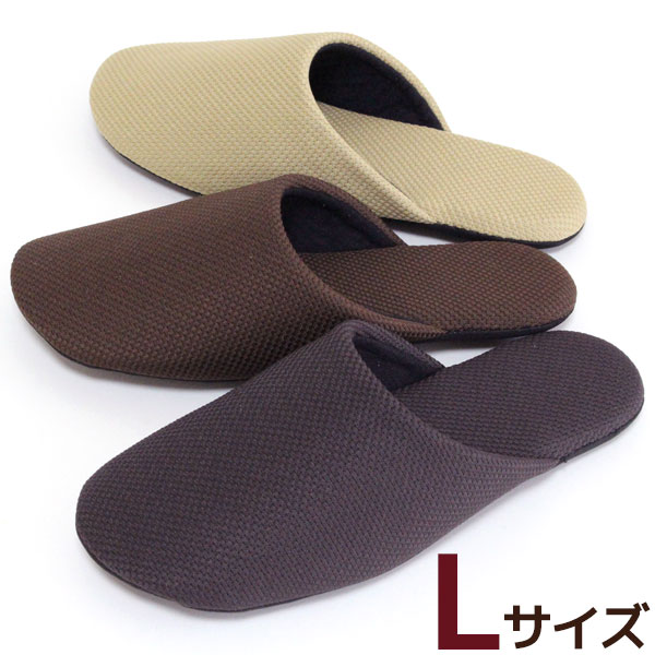 シンプルなデザインでお部屋に合わせやすい ソフトタイプのスリッパ 大きいサイズ、紳士用 Lサイズです。 一見 鹿の子のような細かな凹凸のある素材感。 ナチュラルな茶系の3色展開でご用意しています。 左右の足...