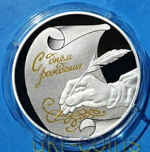 2016 Transnistria 1 Oz Silver Proof Coin Happy Birthday in Russian Gold Gilded