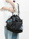 【雅結】より人気のショルダーバッグの新作が入荷! 今作はヘルメットバッグ風のバッグを巾着仕様にデザインしたユニークな一品。 特徴的な前面の大きなポケットには、桜の刺繍や和生地をあしらっており、ミリタ...