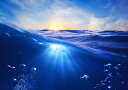 絵画風 壁紙ポスター (はがせるシール式) 波 オーシャンブルーの大海原と日の出 朝陽 太陽 海 サーフィ...