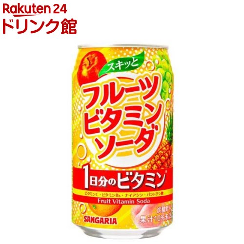お店TOP>ソフトドリンク・清涼飲料>炭酸飲料>スキッと フルーツビタミンソーダ (350g×24本)【スキッと フルーツビタミンソーダの商品詳細】●1日分のビタミン4種類がおいしく補給できる、爽やかな炭酸飲料です...