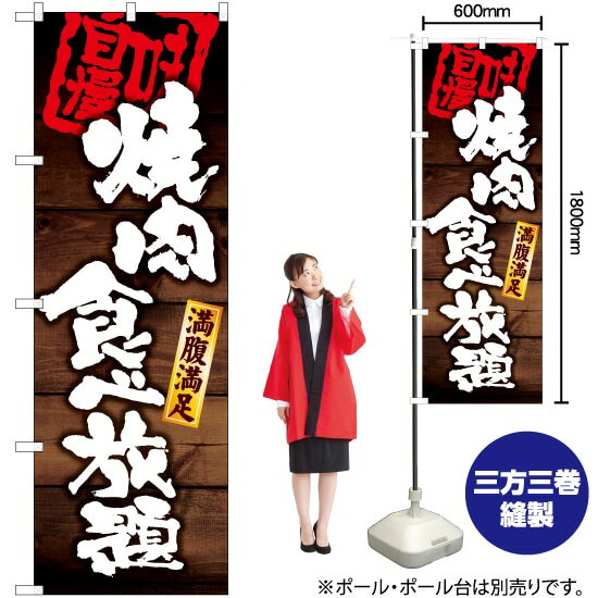 幟 旗 販促 飲食店 焼き肉屋 焼肉 やきにく 焼きにく 食べ放題 バイキング ビュッフェ 焼肉食べ放題 食べほうだい たべ放題
