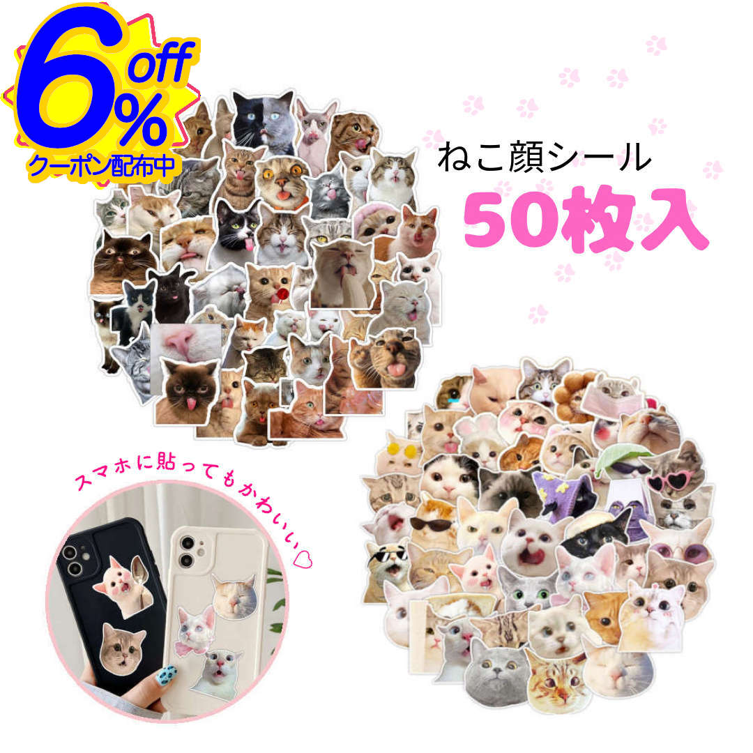 6%OFFクーポン★ケース付猫シール。好みのねこちゃんに出会える大容量の50枚セット ネコ 手帳 ステッカー...