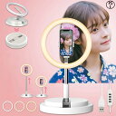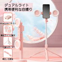 LEDリングライト 折りたたみスタンド ビデオライト 女優ライト 折畳み一体式 スマホスタンド ライト付き...