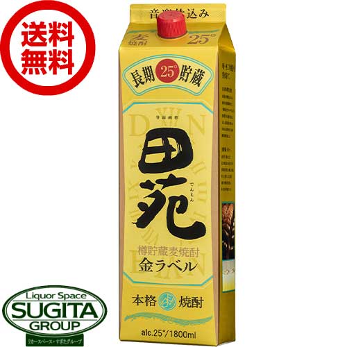 【送料無料】 田苑 金ラベル 長期貯蔵 本格麦焼酎 25度 1800ml パック 【1.8L×6本(1ケース)】 麦焼酎 田...