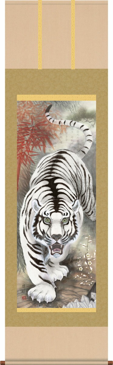 掛け軸 消災白虎朱竹之図 加納悠峰 尺五 桐箱 [和室 床の間 開運 起画の良い お洒落 壁掛け つるす 安い...