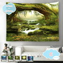 タペストリー 緑の森の風景 白い花 森林 滝 林の中 小屋 インテリア アートポスター おしゃれ 壁掛け 撮影用 ビデオ会議 背景 モダンアート 写真 家/自宅/お店 雰囲気転換 用