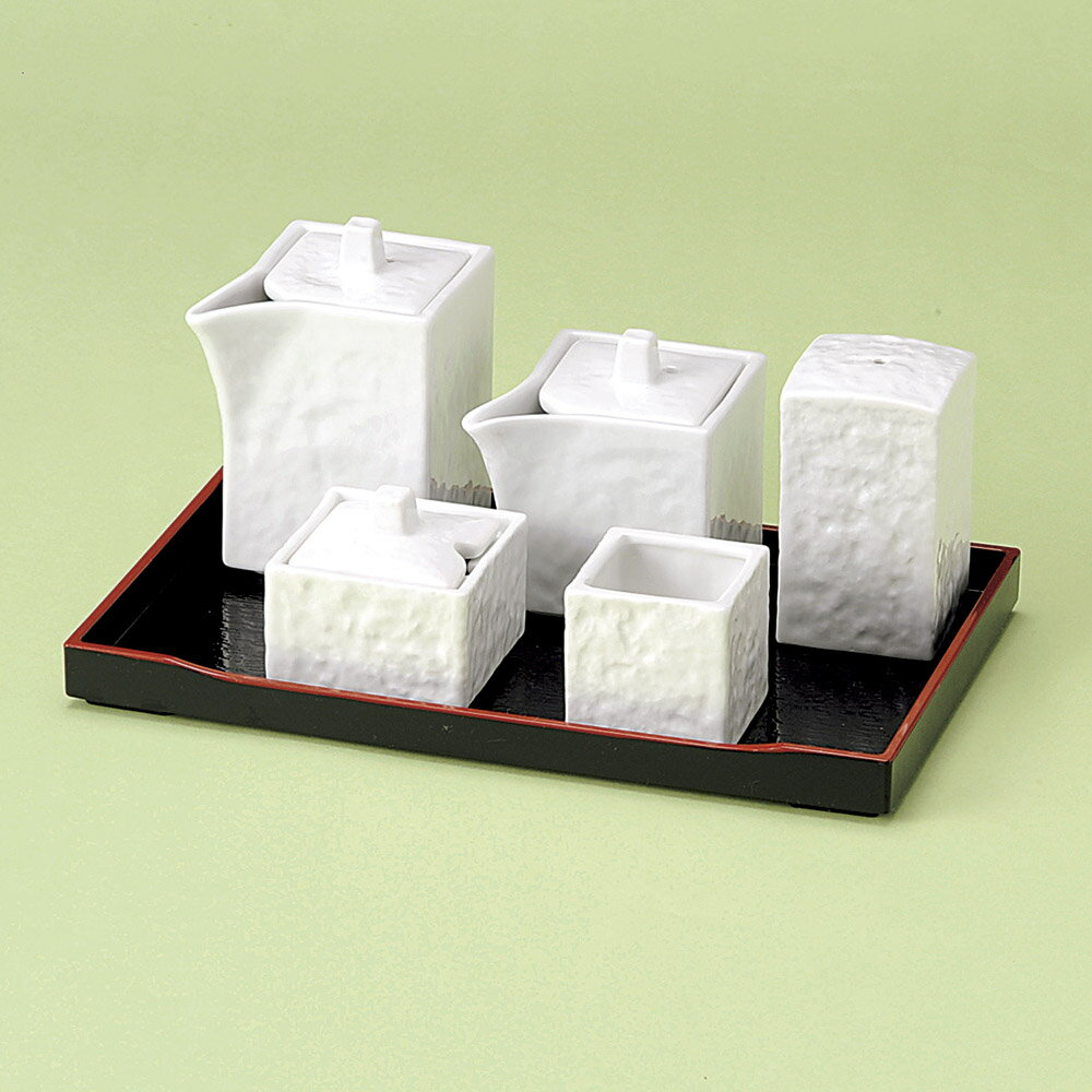 白石目 卓上カスター5点セット (盆トレー付)汁次大(160cc)+汁次小(120cc)+塩入れ+からし入れ+ようじ立...