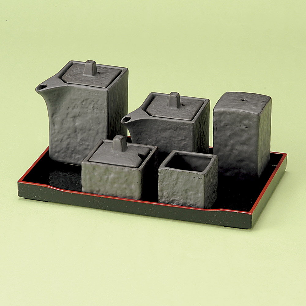 黒石目 卓上カスター5点セット (盆トレー付)汁次大(180cc)+汁次小(130cc)+塩入れ+からし入れ+ようじ立...