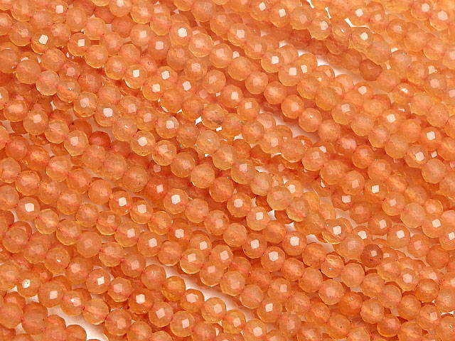 オレンジアベンチュリン 面カット 丸玉 2mm[プレミアムカット]【1連販売】▽ アベンチュリン 砂金石 ク...
