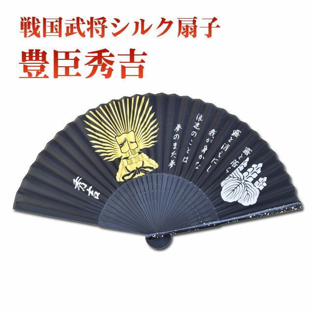 商品名戦国武将家紋入り 高級シルク扇子 『豊臣秀吉』 素材扇面:シルク 扇骨:竹 サイズ約 22cm 太閤秀吉の兜と家紋、辞世の句がデザインされたシルク扇子ですシルクでできているので破れにくく、耐久性に優れて...