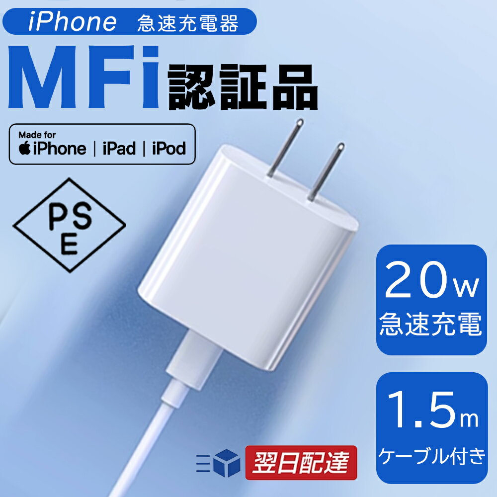 ACアダプター&1.5mライトニングケーブル iPhone iPad対応 急速充電 断線しにくい 丈夫 MFi正規認証ケーブル USB充電器 ACアダプター 365日保証