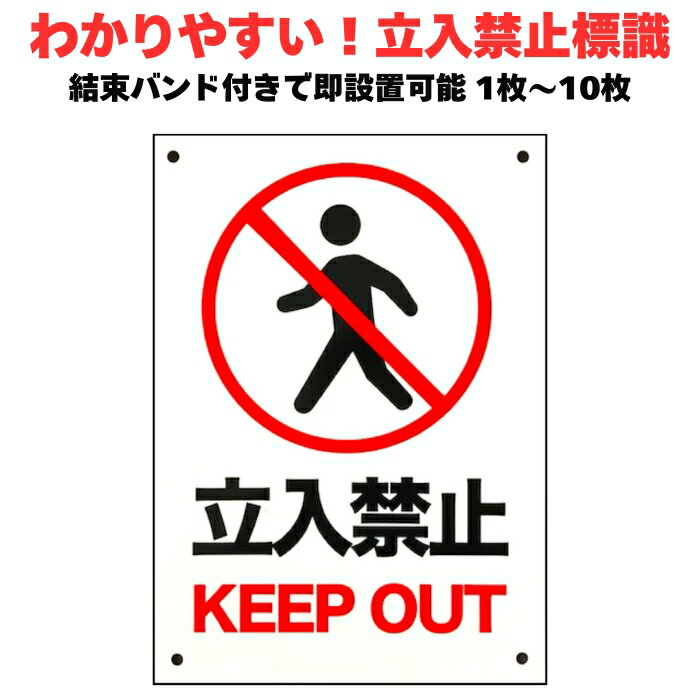 立入禁止 看板 標識 プレート 35cm×25cm 結束バンド付き1/3/5/10枚 サイン ボード 私有地 駐車場 マンシ...