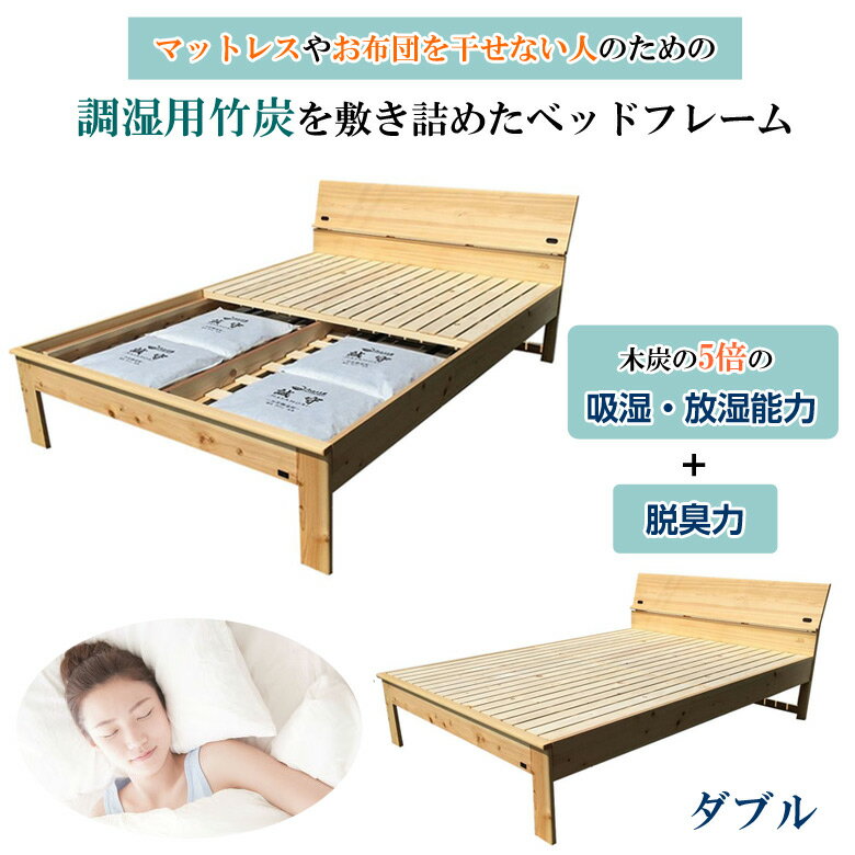 商品名 「森の寝床」国産ヒノキのヘッドレス ベッドフレーム ダブルサイズ D サイズ 2050mm×1410mm×400mm 材質 ヒノキ無垢板 塗装 植物系自然塗料 内容物 調湿竹炭『誠守』1.5kg×8袋 商品説明 ベッドフレームの中...