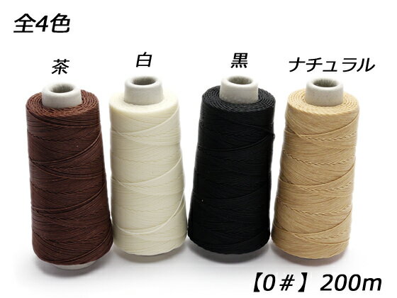 手縫機用糸 ナチュラル/白/茶/黒 200m(#0)[クラフト社] レザークラフト工具 糸
