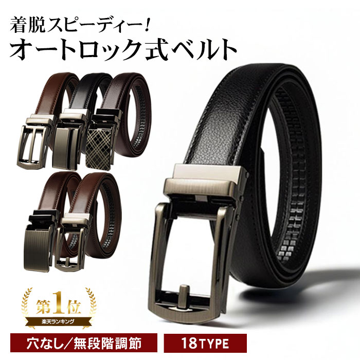 ベルト メンズ 穴なし オートロックベルト 本革(表面) レザー 無段階調整 ワンタッチ クリックベルト ビ...