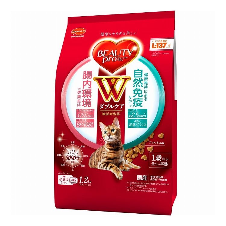 日本ペットフード ビューティープロ キャット Wケア 腸内・自然免疫ケア 1.2kg