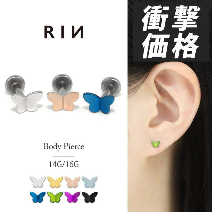 ボディーピアス 軟骨 ピアス 16ゲージ ちょうちょ ステンレスピアス 金属アレルギー レディース 小さめ 小ぶり カワイイ おしゃれ 上品 お洒落 アクセサリー ネジ式