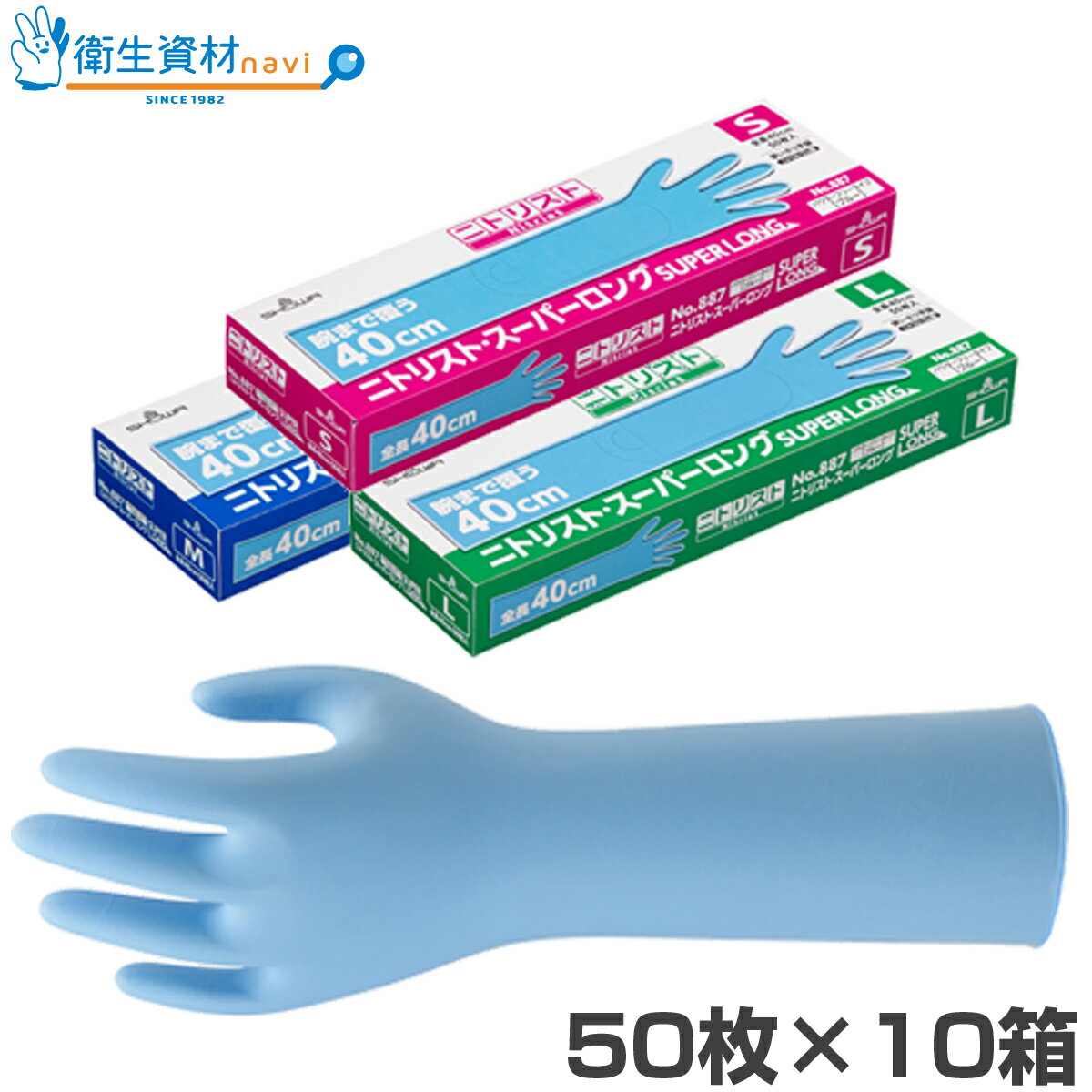 1箱3,410円/No.887ニトリスト・スーパーロング 40cm(50枚×10箱) 衣服と手袋の間の露出を防ぐ、40cmロン...