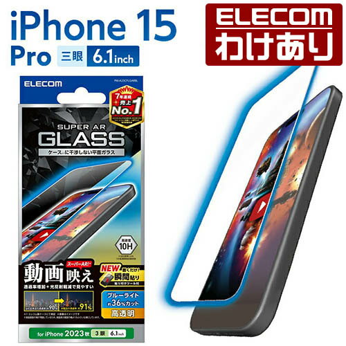 【訳あり】エレコム iPhone 15 Pro 用 ガラスフィルム 動画映え 高透明 ブルーライトカットガラス 液晶 ...
