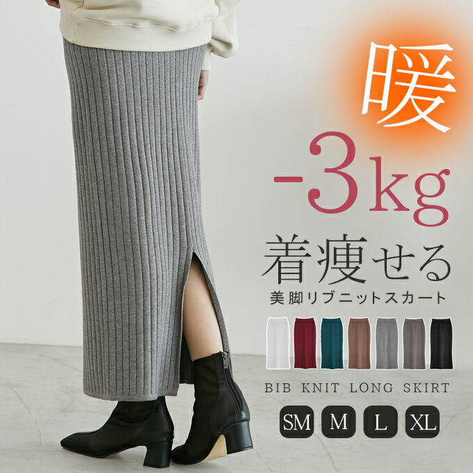 【送料無料●ネコポス発送】リラクシー×美シルエットを叶える!寒い日の相棒!-3kg着痩せるリブニットタイトスカート レディース ボトムス ニットスカート タイトスカート 防寒