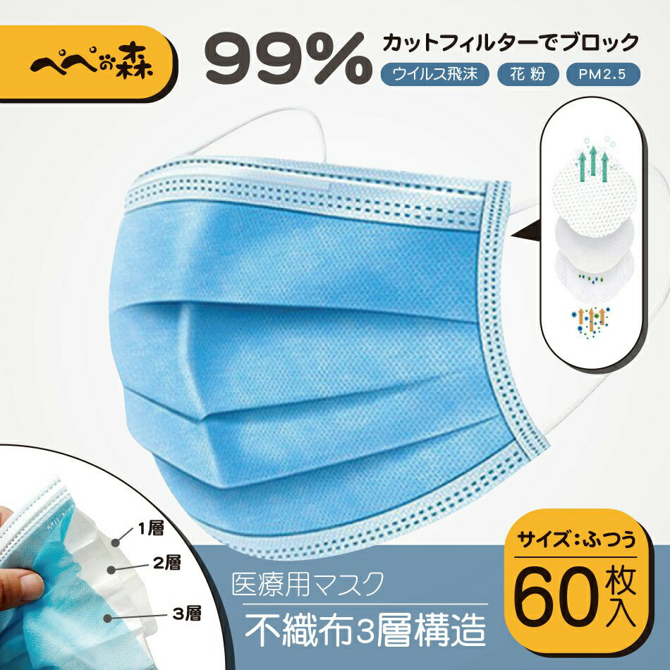 国内在庫あり 国内発送品 医療用マスク 60枚 使い捨て 使い捨てマスク フィルター 箱 男女兼用 立体 伸縮性 在庫あり