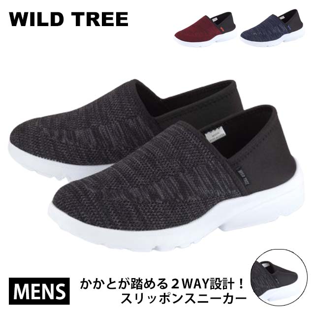 スニーカー メンズ 靴 スリッポン WILD TREE AK5279 2WAY かかとが踏める ヒモなし 軽い 超軽量 履きや...