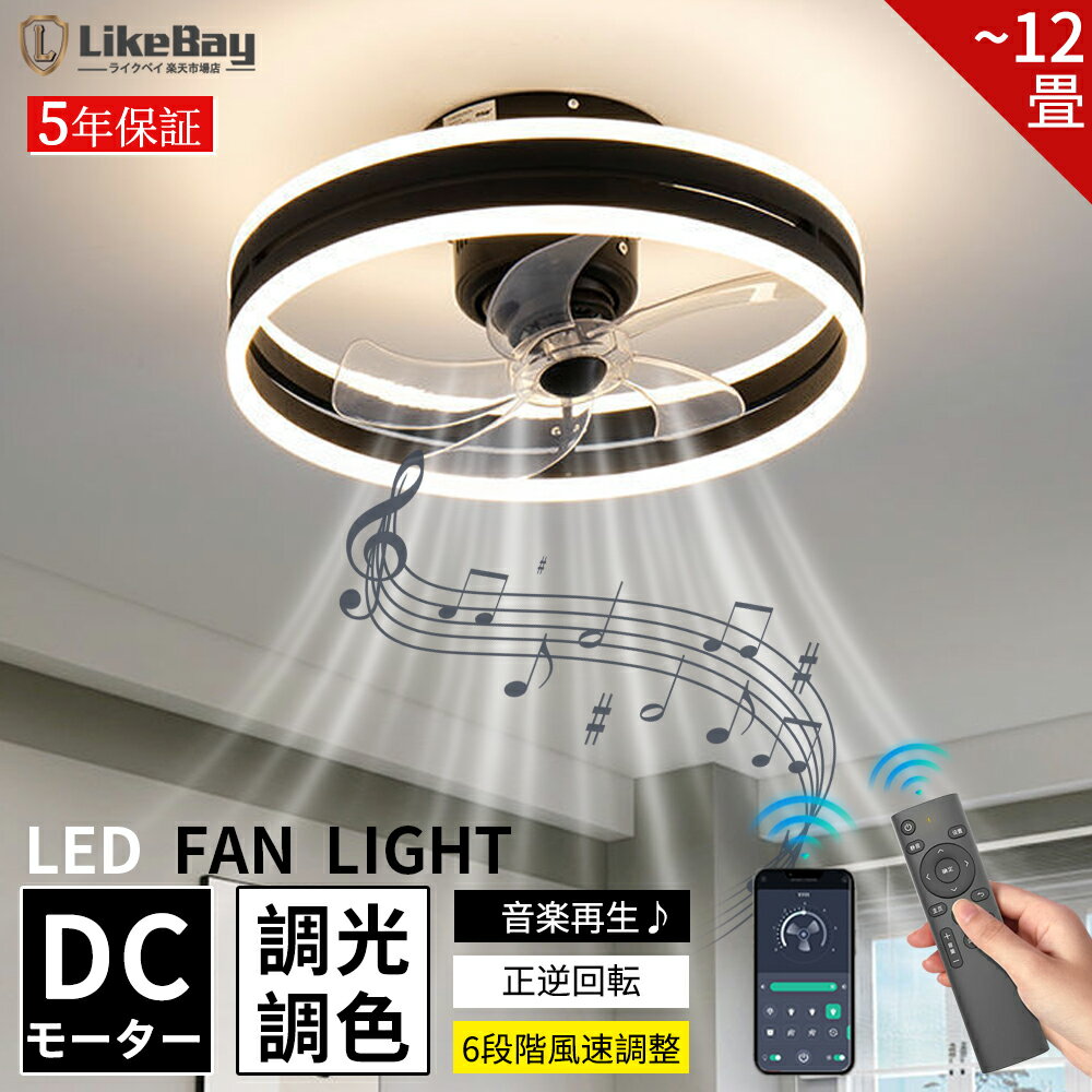 【音楽再生】ファン付き 照明 扇風機 超静音 ファン付き 6畳 10畳 DCモーター 子供部屋 洗面所 常夜灯 リモコン付き Bluetooth 音楽 常夜灯モード 新生活応援 工事不要 送料無料 5年保証