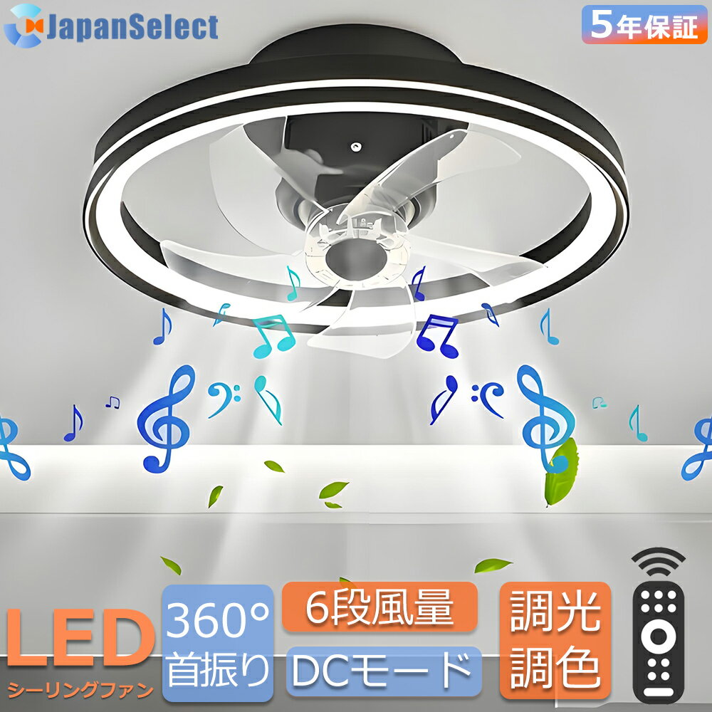 [月間優良ショップ] シーリングファンライト シーリングファン led 360°首振り 調光調色 逆回転機能 音...