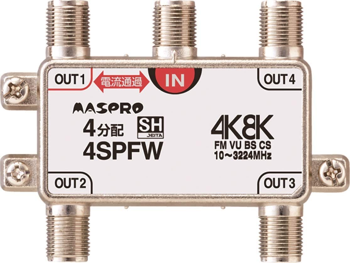 マスプロ 屋内用4分配器(4K・8K対応) 1端子電流通過型 4SPFW