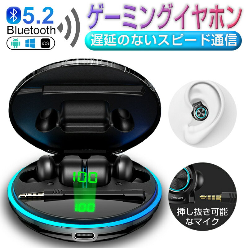 ワイヤレスイヤホン Bluetooth5.2 ゲーミングイヤホン 遅延ゼロ ゲームイヤホン 独立マイク付き ヘッド...