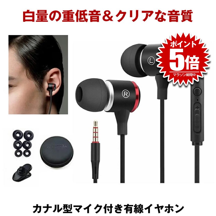 イヤホン 高音質 イヤフォン カナル型 有線 マイク付き 重低音 スポーツイヤホン iPhone i 送料無料!迫力の重低音&クリアな音声♪
