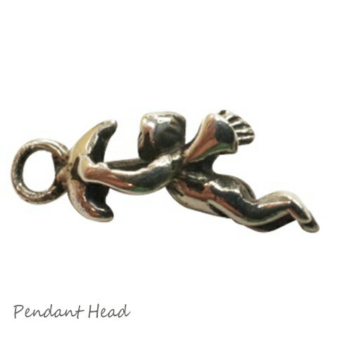 シルバー925 三日月を持っている様にも弓矢を持っている様にも見える可愛らしい天使のペンダントヘッド ...