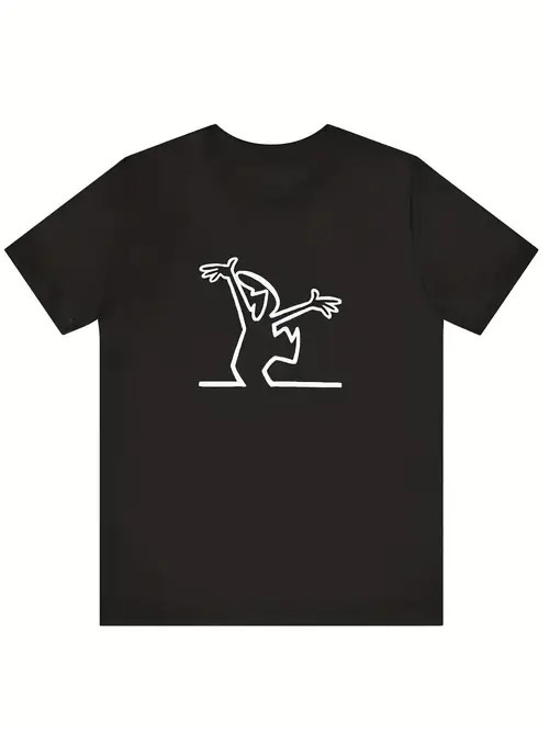 200g 背中にシンプルな白い漫画のキャラクターがプリントされた黒いTシャツは、明確なブランディングは...