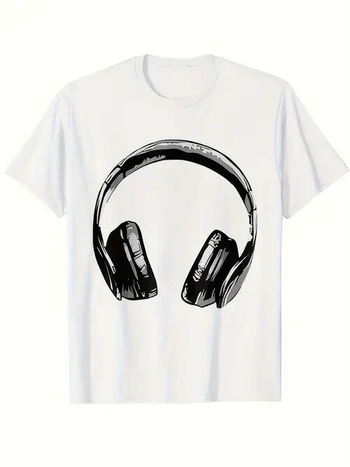 200g ヘッドフォンプリントの白いTシャツは、物理的な情報がヘッドフォンプリントであり、カジュアルな...