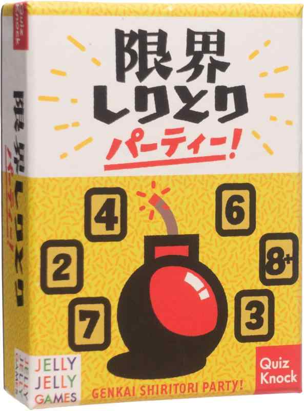 JELLYJELLYGAME 限界しりとりパーティー QuizKnock発焦りながら答える10分勝負のしりとりパーティー 2~6人用 カードゲーム内容物 数字カード 47枚 / コマンドカード 6枚 / 説明書 1枚2〜6人・約10分・8歳以上対象...