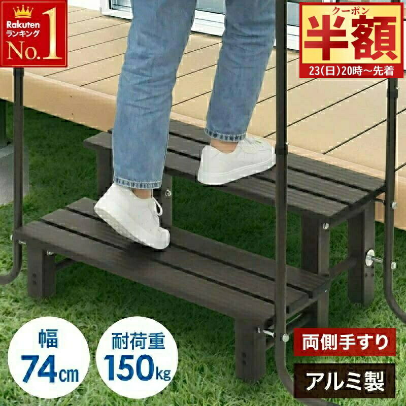 \ 半 額&10%OFF /23日20時~ 【 左右 両側 手すり 】 踏み台 2段 アルミ 幅74cm 高さ調節 玄関 外 ...
