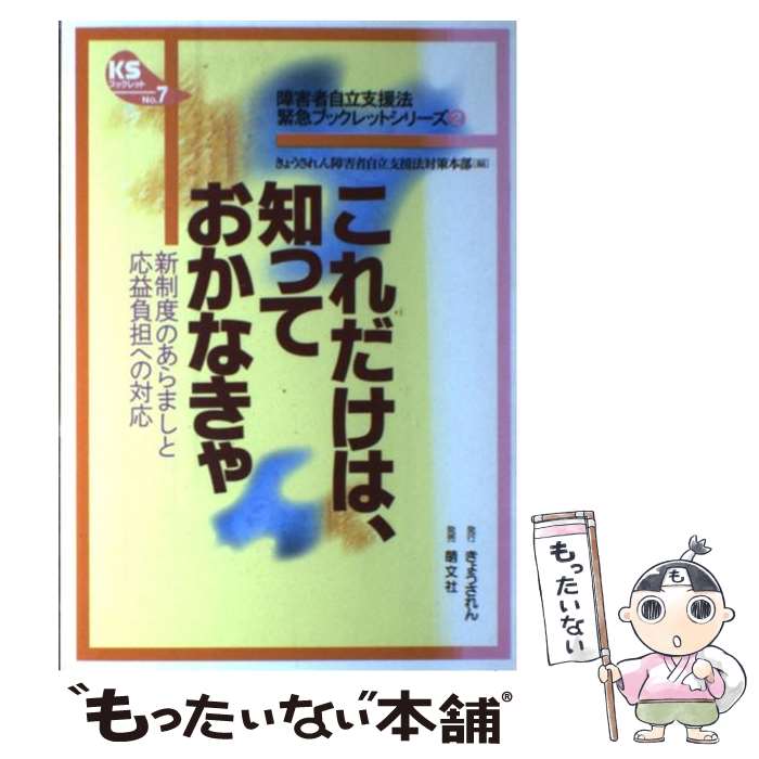 【中古】 これだけは、知っておかなきゃ 新制度のあらましと応益負担への対応 / きょうされん障害者自立...