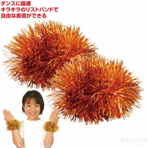 ダンスに最適!キラキラのリストバンドで自由な表現ができる!●サイズ 約φ90mm ●材質 房:PVC キラキラリストバンド 1組 オレンジ(記念品・その他 体育祭 運動会 ダンス 体操 応援 集団行動)