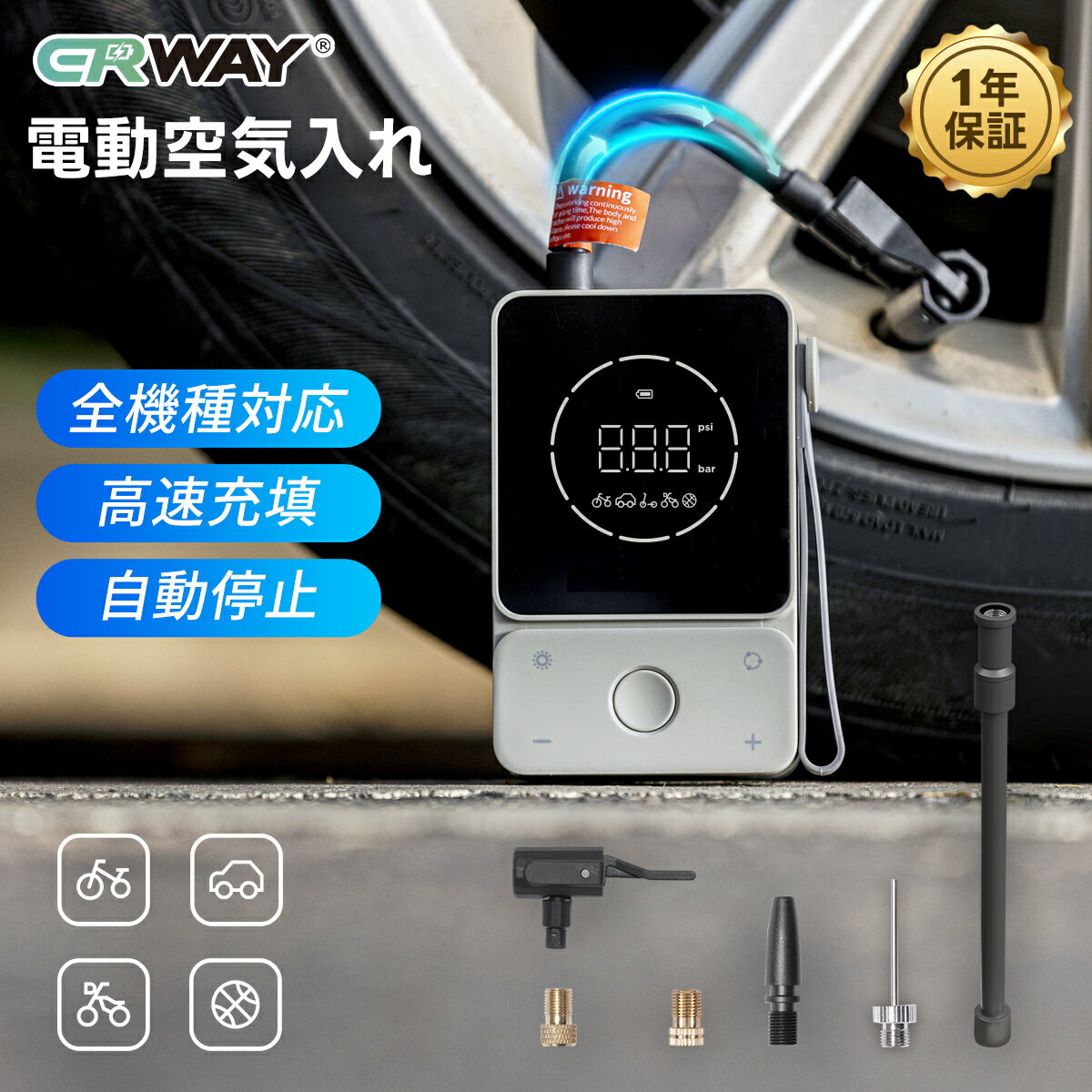 コンパクト 軽量 空気入れ 仏式 英式 米式 全バルブ対応 コスパ抜群 多機能 ワンタッチ かんたん操作 加熱保護機能 低騒音 MAX150PSI ギフト 1年保証 送料無料 電動空気入れ SP03