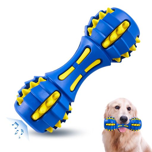 AUSCAT犬おもちゃ噛む歯磨きデンタルトイ頑丈音犬のおもちゃ大型犬中型犬ダンベル青黄