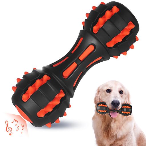 AUSCAT犬おもちゃ噛む歯磨きデンタルトイ頑丈音犬のおもちゃ大型犬中型犬ダンベル(黒赤)
