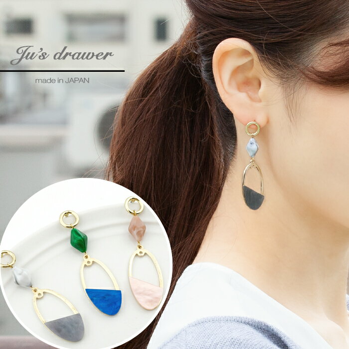 送料無料 ピアス レディース 金属アレルギー対応 揺れる マーブル カラー選択 グレー ブルー ピンク ゴ...