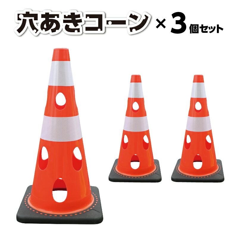 【送料無料】穴あきコーン3個セット カーボーイ コーン セーフティコーン 重量コーン ロードコーン...