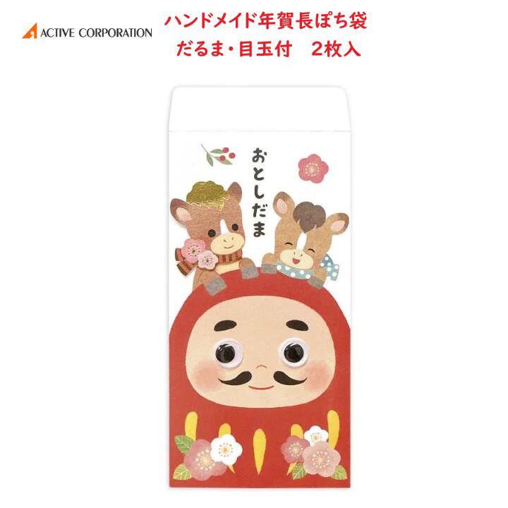 ハンドメイド年賀長ぽち袋 だるま・目玉付 2枚入 封印シール付き おとしだま お年玉 午 ウマ 馬 2026年 ...