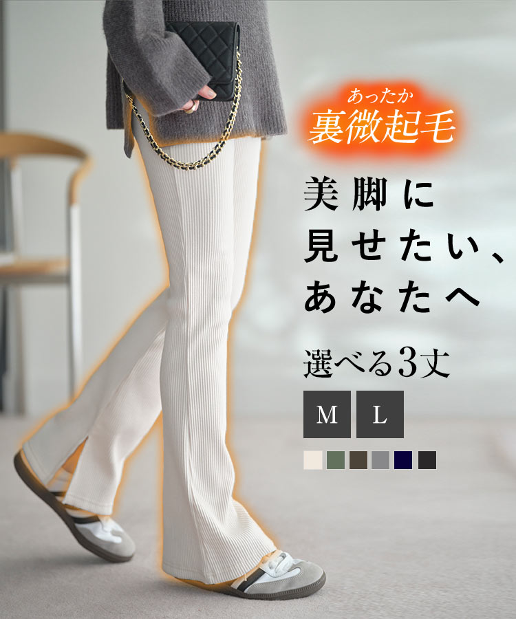 【低身長さん〜高身長さんまで】裏微起毛 選べる3丈 リブフレアパンツ [ アンクル フルレングス トール ]