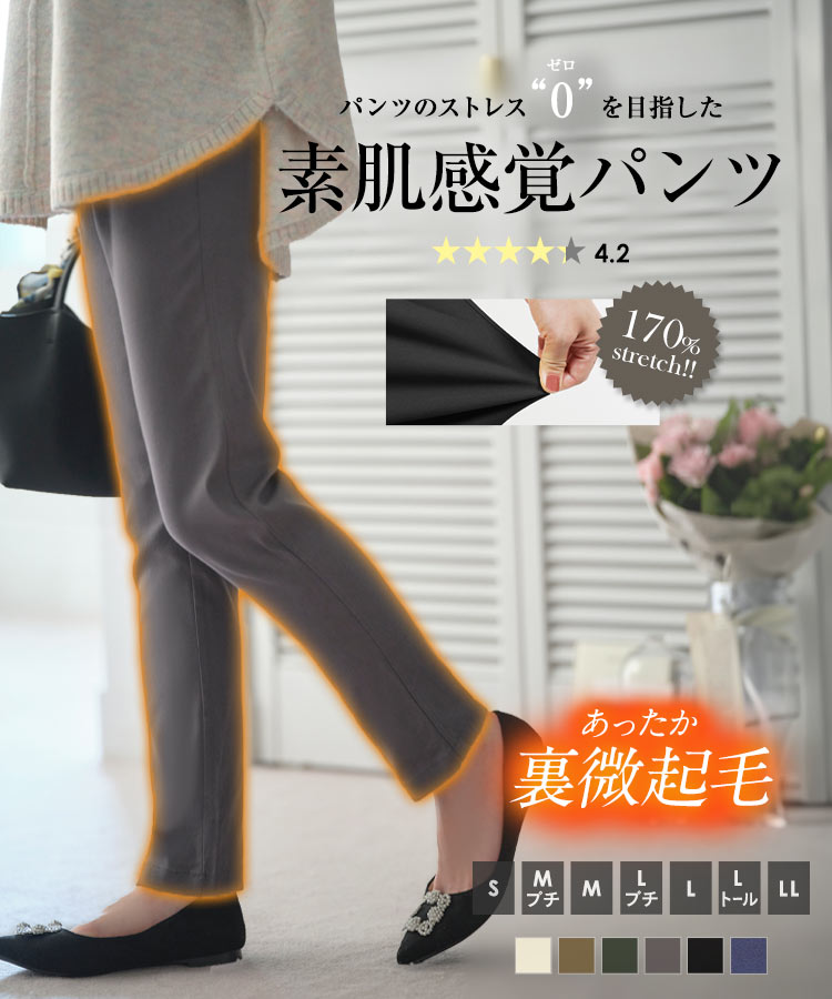 大人気ボトム【M2390】に、裏微起毛タイプが新登場。暖かい裏微起毛なのにぐんぐん伸びる驚きの穿き心地。締め付けを感じさせない楽ちんパンツは、デイリーに取り入れたいマストアイテムです。軽い力で伸びるので...
