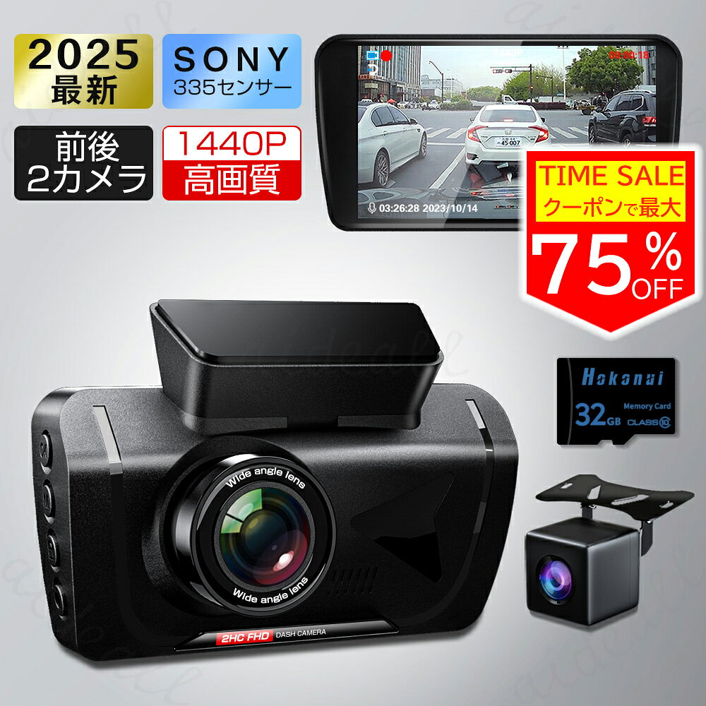【クーポンで4,980円】 ドライブレコーダー 前後カメラ Anero 赤外線暗視ライト 1440PフルHD高画質 170...