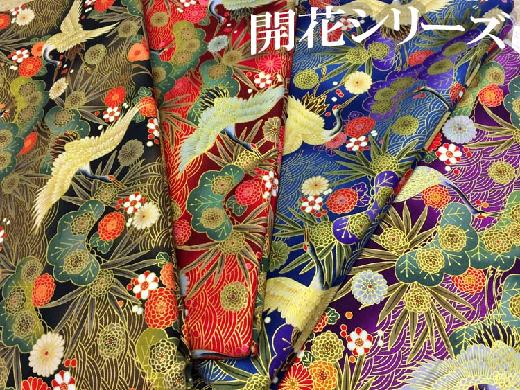 スケアー 和柄生地 着物風 鶴と青海波に花模様 4色 【和柄 生地 布地】
