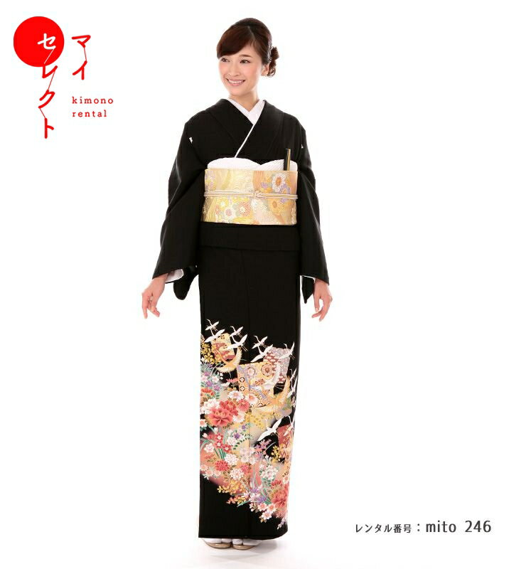 【レンタル】 黒留袖 mito_246 / K-5803 吉祥色紙絵に飛翔鶴 正絹 往復送料無料 留袖 母親 着物 レンタ...